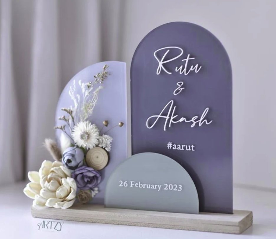 إطار راتنجي مُخصّص مع زهرة صغيرة | هدية زفاف