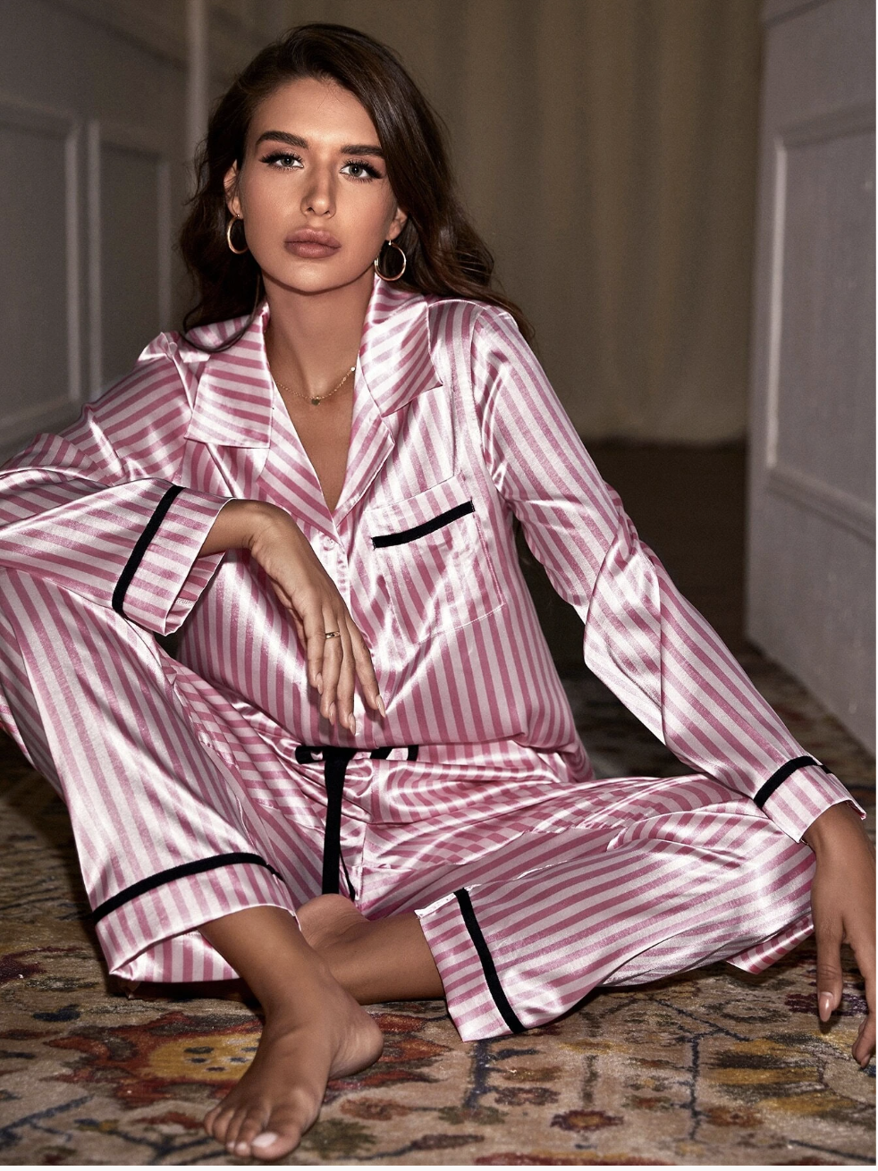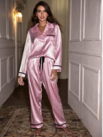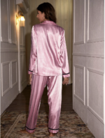طقم بيجامة ساتان مخطط