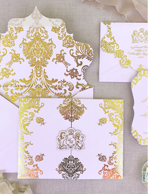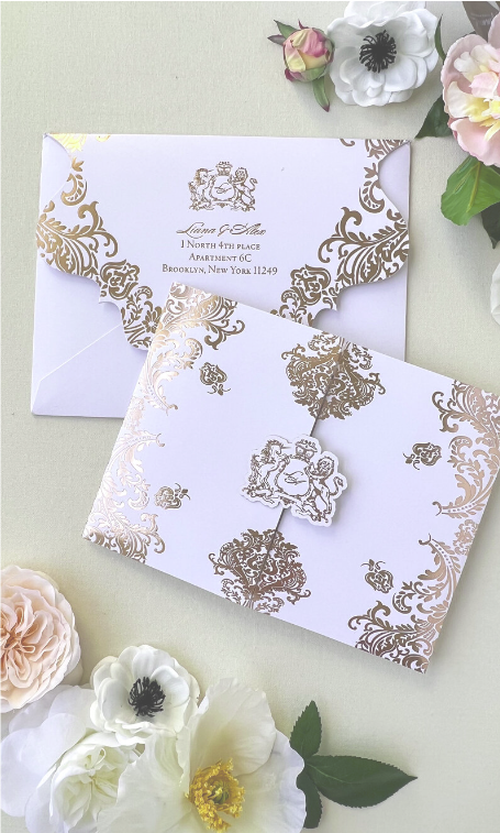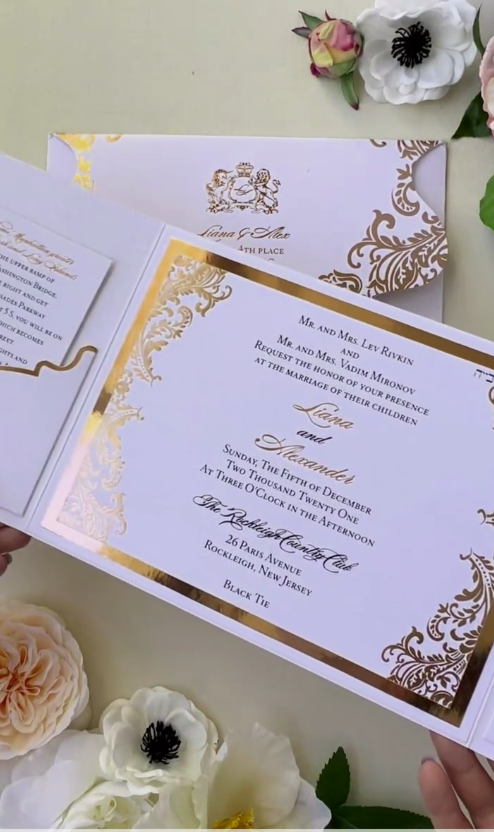 بطاقات دعوة زفاف بورق ذهبي