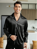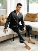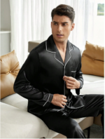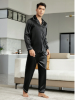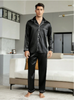 بيجامة ساتان سوداء بسيطة
