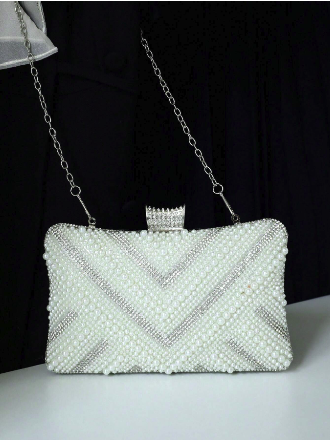 Sac De Soirée En Perles Artificielles Et En Strass Dans Une Boîte, Convient Aux Bals De Promo, Aux Fêtes, Aux Mariages, Élégant Et Chic
