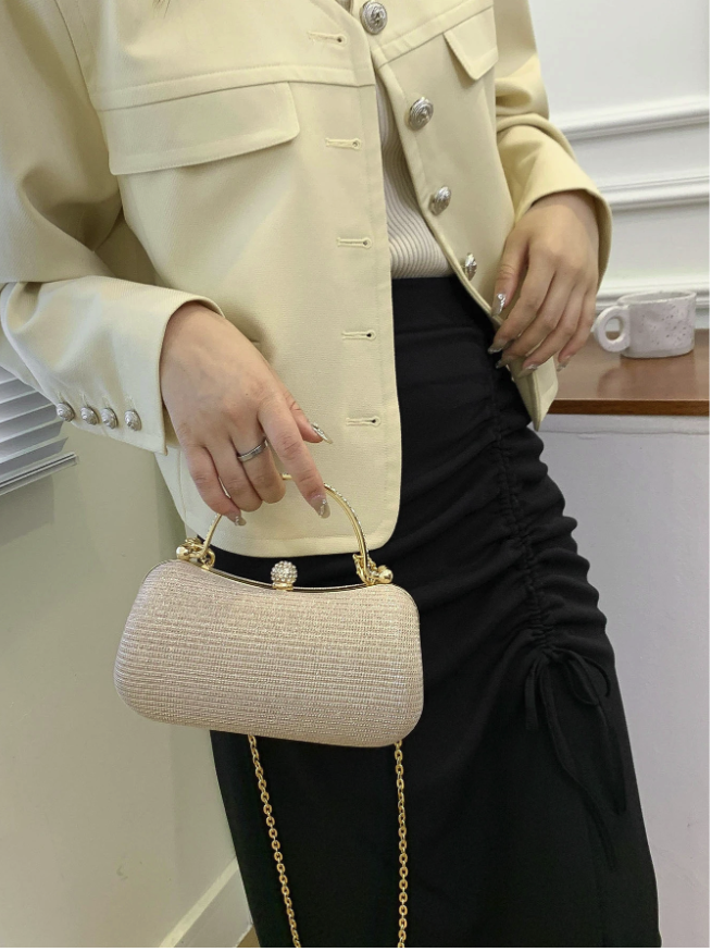 حقيبة سهرة صغيرة فاخرة مزينة بأحجار الراين البراقة ومزينة بالترتر اللامع، حقيبة عشاء بسلسلة معدنية من اللؤلؤ الصناعي وتفاصيل كريستالية لحفلات الفتيات والنساء والعروس، مثالية لحفلات الزفاف وحفلات التخرج والكوكتيل